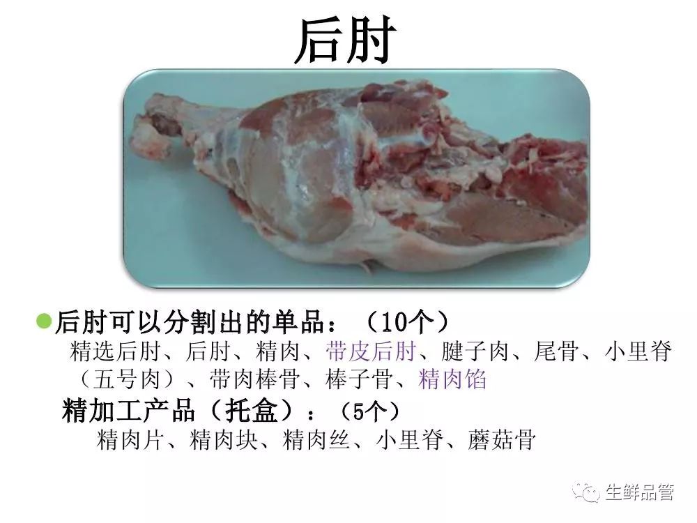 # 猪肉精细化分割标准图解 [ 生鲜品管 ](javascript:void\(0\);) **生鲜品管** ![]() 微信号 sxpg01 功能介绍 生鲜品管技术资料共享 ____ ___发表于_ 收录于合集                                    资料来源:生鲜品管 预览时标签不可点 微信扫一扫 关注该公众号 轻触阅读原文 继续滑动看下一个 [知道了](javascript:;) 微信扫一扫 使用小程序 **** [取消](javascript:void\(0\);) [允许](javascript:void\(0\);) **** [取消](javascript:void\(0\);) [允许](javascript:void\(0\);) : , 。 视频 小程序 赞 ,轻点两下取消赞 在看 ,轻点两下取消在看
