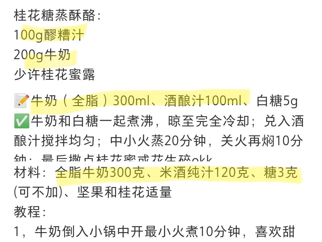 # 可能是最神秘的中式甜品之一…… **企鹅吃喝指南** 微信号 qiechihe 功能介绍 客观独立,亲身实测,专业严选,找遍来自全世界的好东西,和你分享吃得到、喝得出的快乐。 ____ ___发表于_ 收录于合集 大家好,我是喜欢研究老菜谱,立志传承中华美食的佩普西:)近期在xhs或下厨房找选题灵感,经常刷到一个神秘的中式甜品,而且几乎篇篇爆火,长得基本大差不差:白润润,有点像双皮奶。质地明显要细嫩柔滑多了,勺子一㧟就会柔软地散开,看起来好好吃喔!原料也很简单:米酒,牛奶,糖,买齐完全没有门槛,做法好像也就混一混热一热就出来了......(所以到底是什么爆火的神秘力量??)进一步检索了一下,发现这碗白润润嫩滑滑,怎么有这么多名字?? 在《红楼梦》里,它叫糖蒸酥酪,皇家独享的甜点,元春从宫里赏给小测成绩出色的宝玉,宝玉特意留给了袭人吃;电视剧《知否》又成功引流一波,它被唤作冰酥酪,是主角明兰姐妹们的最爱;《甄嬛传》里广受欢迎的酥酪,也是它。 再查查,原来这碗纤柔的甜品是纯正的北方血统!它有个更亲切且接地气的名字——老北京宫廷奶酪,或中式奶酪!南方的朋友也不陌生,这边的宝珠奶酪,XX酪酪饮品中的“酪酪”,也是它!(是不是如大梦初醒!)而且更神秘的是,在一众花名背后,“酥酪”的做法也开始扑朔迷离了起来......随手一搜,弹出满屏亲妈菜谱,基本不超过5步。但每个“亲妈”从原料配比到做法,完全不一样,一边要求微波炉打,那边说要冰箱静置,还都表示自己的方子能成功?请问你们真的在做同一种东西吗??  再往下翻翻,成功帖子下面, **更多的是翻车的血与泪** **;)** 包括我们,前后尝试过两次,结果都是彻底的完败本人佩普西,抱着和冰酥酪掰头到底的决心,本着格物致知的理念研究了全网几乎所有的宫廷奶酪/冰酥酪/自制宝珠......方子。在厨房捣鼓了整整两天,走过了所有错路,终于总结出一份保姆极 **0失败配方,材料极简,成败全在细节** 。完整方子照旧放在文末卡片了,下面是实验报告,两日的血泪记录,啊不是,是探索过程: **第一轮实验** ,首先我想搞清楚:酥酪配方中的 **米酒,到底是什么酒** ?网上众说纷呈,有用酒酿的,有说米酒,还有说要还在发酵中的“活着的”米酒,最好是自制米酒(再见了您)。到底是酒酿中的什么成分在与牛奶发生作用?我设置了如下对照组,拿清酒与3%酒酿,配上不同比例的牛奶,分别做了五碗:清酒的实验组保证了酒精的比例和酒酿组一致(是的,本理科生单独算了酒精比例)。全部蒸20分钟,再冷却后,清酒组全部无法凝结,只有 **1:3的酒酿组** 微微凝固。似乎成功已经初露苗头了!! **做冰酥酪用酒酿就可以** ,以及内心窃喜着没必要自己做米酒了;)虽然有效成份仍然未知,但我信心倍增,立马开启 **第二组实验** —— **研究酒酿与牛奶的配比!** 还得意地追加了两个大份:分别是酒酿与牛奶1:3和1:2的比例,放进蒸锅里蒸,等着看哪个好吃,就差不多工作完结撒花了结果开完会,一小时后回来—— 这是怎么回事??凝固是凝固了, **但这不是嫩滑滑的酥酪啊!** 已经要凝成干酪了好吗?乳清分离严重,固体部分偏干,吃起来有粉粉的乳酪质感......而且1:2的明显比1:3的更干更粉。同事安慰我:想开点,至少你成功做出了两碗干酪含泪处理掉了失败作,本轮实验学习到的新知识点:蒸制的时长越长、酒酿比例越高,乳酪会越干。所以 **不能蒸太久,酒酿与牛奶比例介于1:2~1:3之间为好** ,接近1:2,乳酪就可能偏干。头一天的两轮实验,以0.25份的成功宣告结束,摄影师都下班了,独留我一人与两大碗干酪在公司……隔天再战, **第三次实验** :换了酒精度更高的酒酿(6%),牛奶也升级成了香甜浓郁的水牛奶。 **直接全上高配,怎么可能不成功!!** 然后,我又被现实教育了;)不管前后用多大火、蒸多久,乳酪都无法凝结,甚至还蒸出了“烤奶”的颜色和风味……感觉距离酥酪越来越远了啊啊啊啊啊啊连续的挫败让我不敢再贸然大手笔实验了(也不想再洗锅洗碗了)。外场求助了搞化学研究的朋友,这才恍然大悟形成乳酪的原理,是 **牛奶中蛋白质遇到酒精或酸性物质变性凝结。** 一旦牛奶中脂肪含量高了,脂肪会包裹蛋白质阻止它发生反应,所以脂肪含量更高的水牛奶根本凝结不起来噢! 这也说明了网上配方中,都有一步需煮沸牛奶,等冷却去掉奶皮的真正作用——不是为了浓缩牛奶(仅仅煮开是无法浓缩牛奶的!),而是 **降低牛奶中的脂肪含量** ,提高蛋白质变性凝结的概率!! 所以选择牛奶时,要 **尽量选择蛋白质含量高,脂肪含量低的牛奶** 。此时也很想问自己,为什么不早点想到场外求助呢orz  没做成功的酒酿烤奶也没浪费,加了一点花生酱和咖啡饼干碎做了一杯花生烤牛乳酪,酒酿的一点酸度刚好平衡浓郁的花生,收获一杯好喝的热饮~既然已经知道了用什么米酒,用什么奶,合适的比例区间,蒸制时长,那 **第四次挑战** ,我,准备好了。果然,选对了 **牛奶(冰鲜巴氏牛奶)** ,用加强版酒酿来做成功率一下子变高了!上锅蒸5分钟立马凝结!是真真正正,又嫩又滑的酥酪!!我做出来了(此时打字的手也在颤抖)!已经摸透了成功的基本诀窍,还剩那么多原料呢,做都做了具有钻研精神我怎么可能止步于此小小的胜利前?想要做出一份甜度适中、酒酿香浓、口感正好的 **100%** **完美酥酪** !又试了几个不同的版本,最终挑选出的这个方子,编辑部最挑剔的同事吃完表示 **愿意