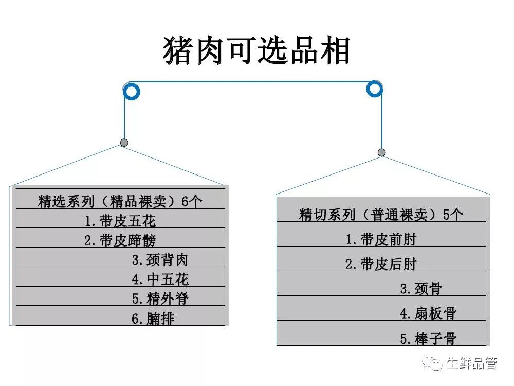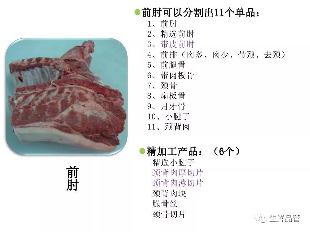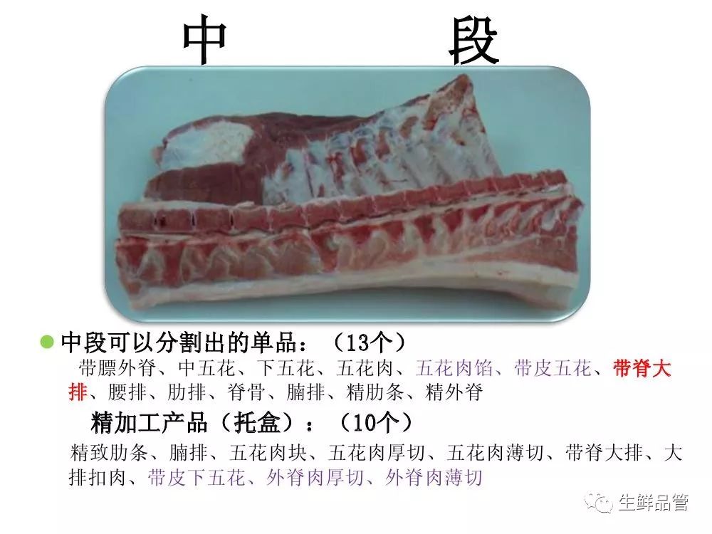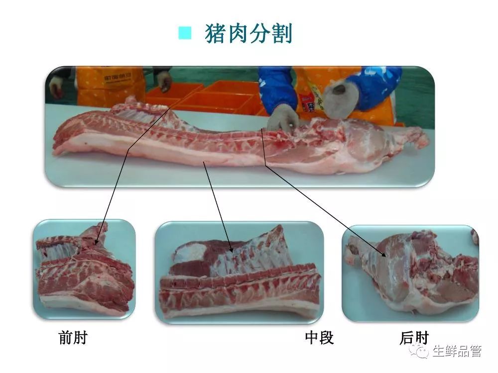 # 猪肉精细化分割标准图解 [ 生鲜品管 ](javascript:void\(0\);) **生鲜品管** ![]() 微信号 sxpg01 功能介绍 生鲜品管技术资料共享 ____ ___发表于_ 收录于合集                                    资料来源:生鲜品管 预览时标签不可点 微信扫一扫 关注该公众号 轻触阅读原文 继续滑动看下一个 [知道了](javascript:;) 微信扫一扫 使用小程序 **** [取消](javascript:void\(0\);) [允许](javascript:void\(0\);) **** [取消](javascript:void\(0\);) [允许](javascript:void\(0\);) : , 。 视频 小程序 赞 ,轻点两下取消赞 在看 ,轻点两下取消在看